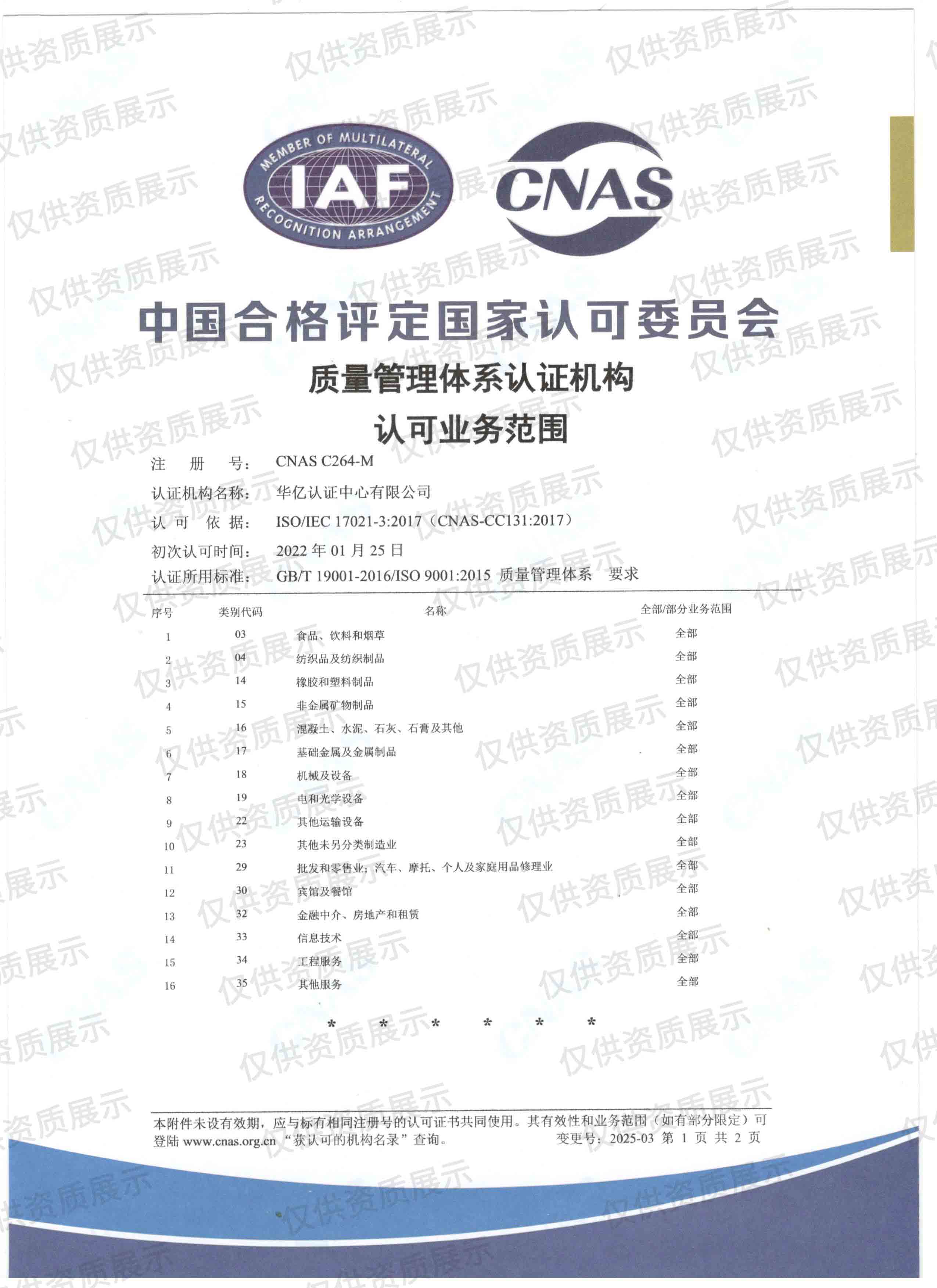 华亿认证中心EMS、OHSMS通过CNAS扩项评审!